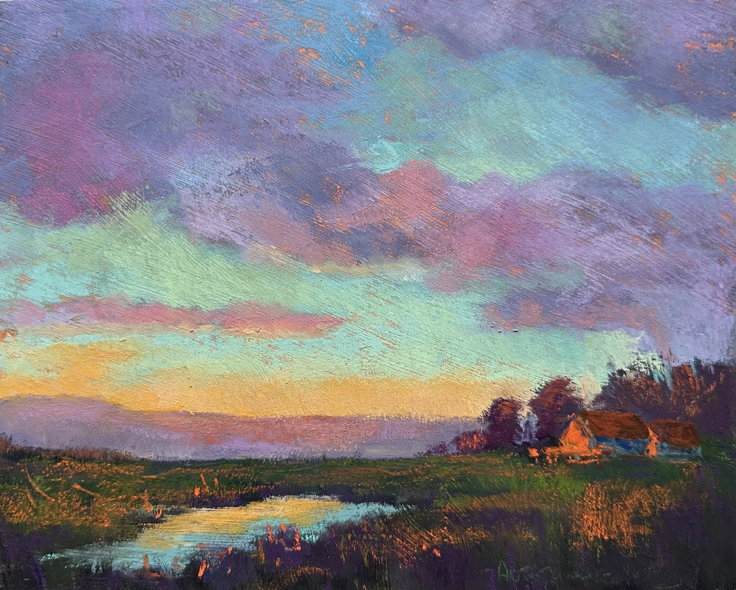 I painted this sunset while listening to “Calling All Angels” by the Wailin Jennys. Their lyrics capture the feeling I have when I allow myself to stand still and absorb the light and color.