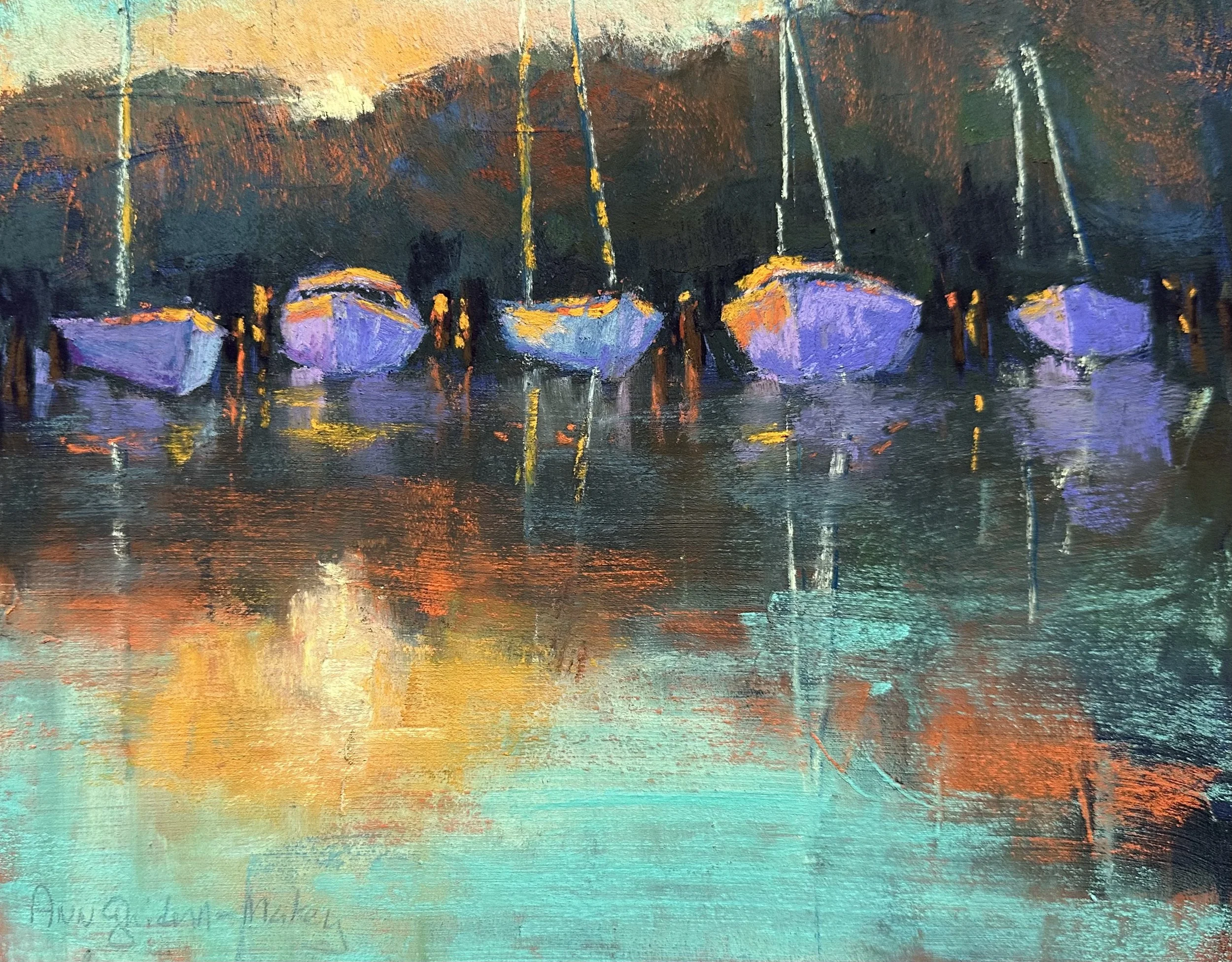 Cat Steven’s Song, Morning Has Broken. captures the feeling of awe and gratitude when I am fortunate to catch a sunrise. Here, the orange light peeks over the trees, hits the edges of the sleeping boats and is reflected in the water. I am filled with hope and promise for the new day.